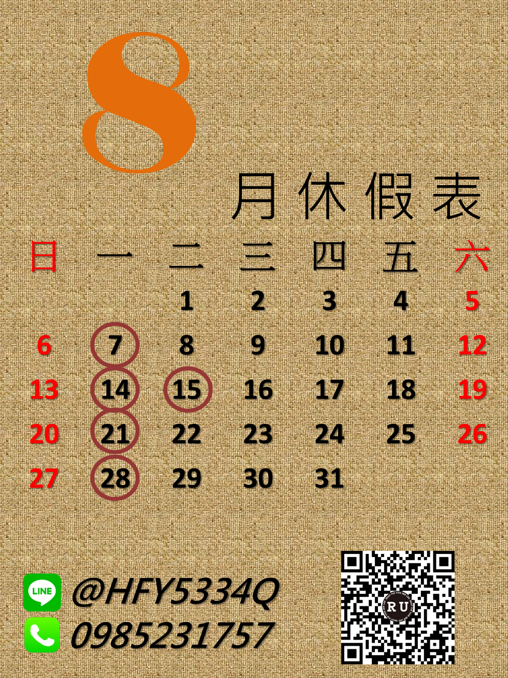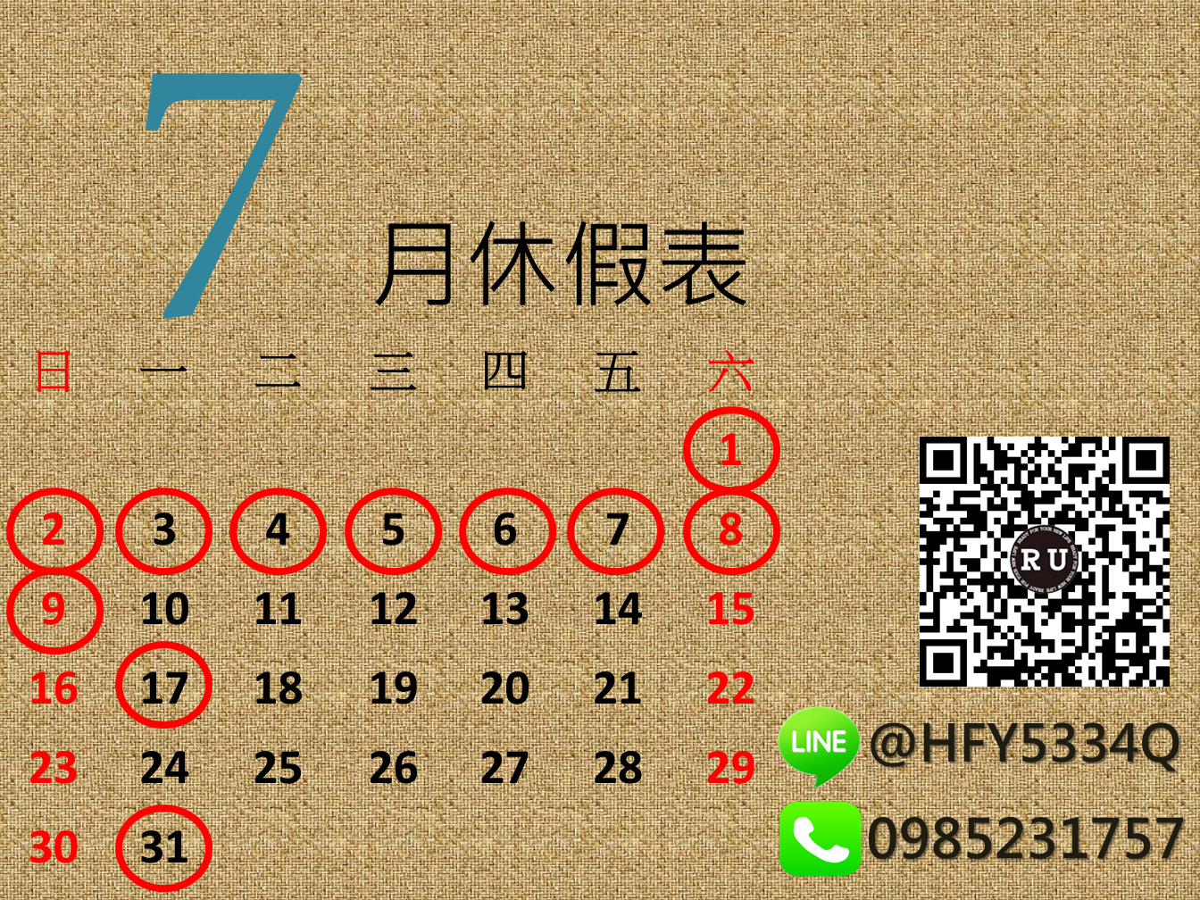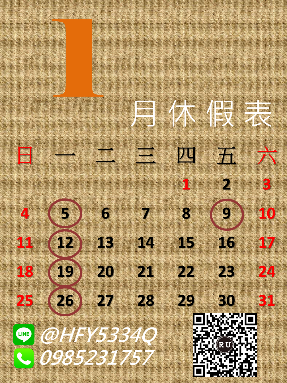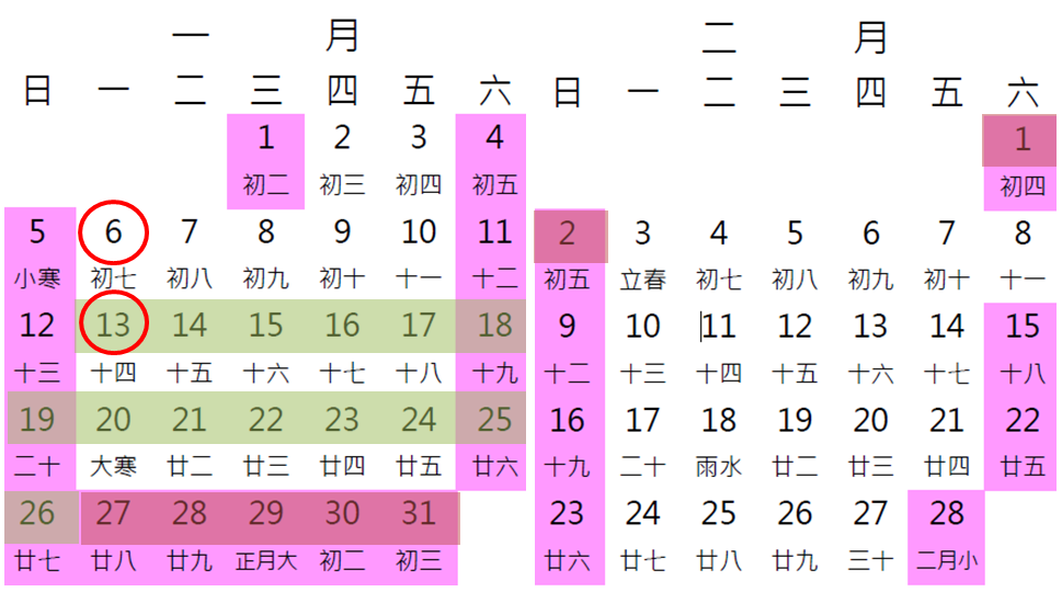 從 1月27日-2月2日 年假休息 (20日不休息)