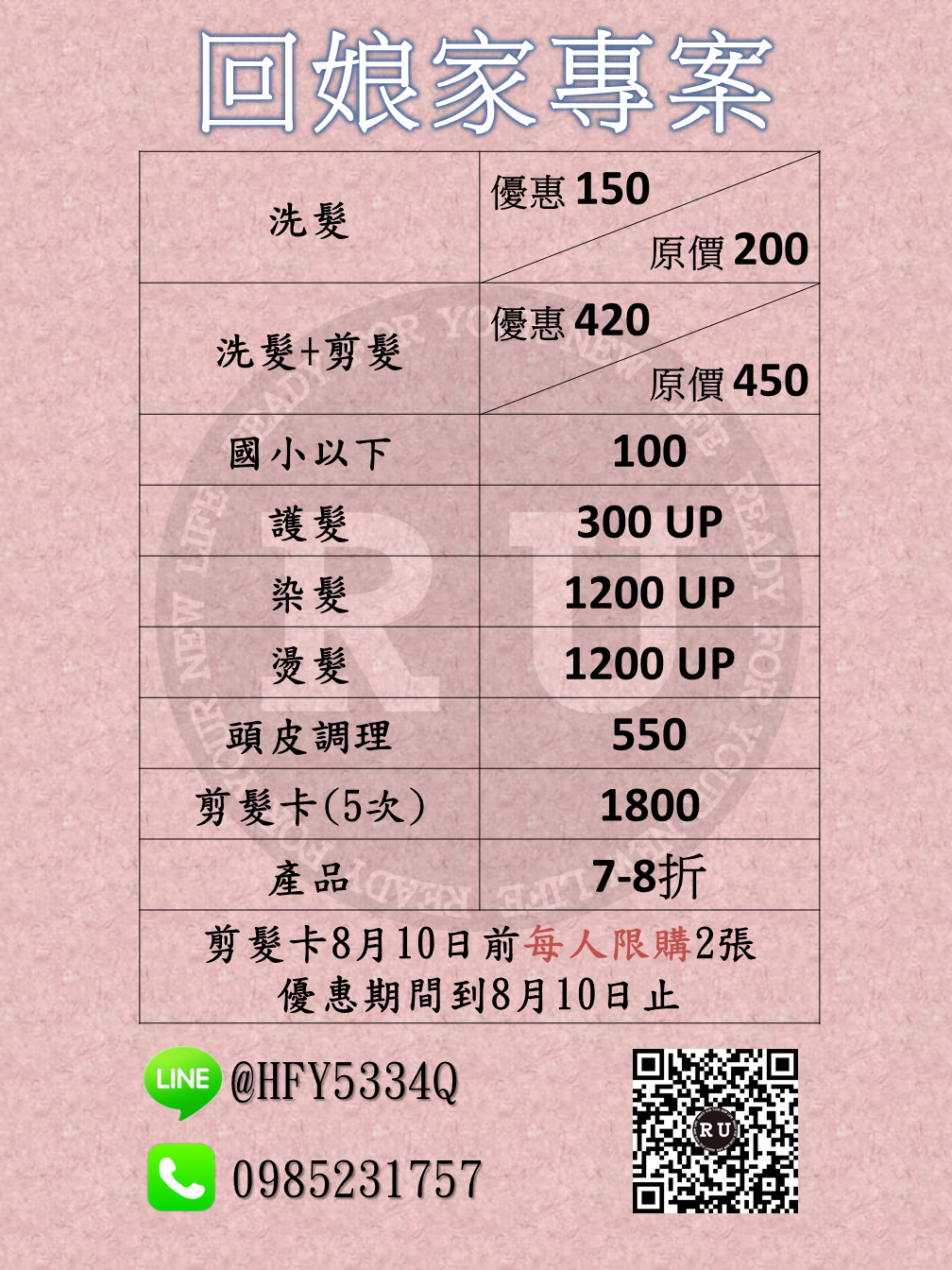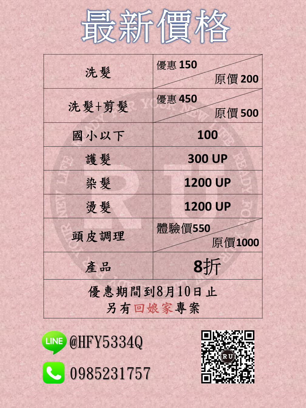 從2月2日至2月9日止 服務價格調整+100 ( 染、燙九折 )